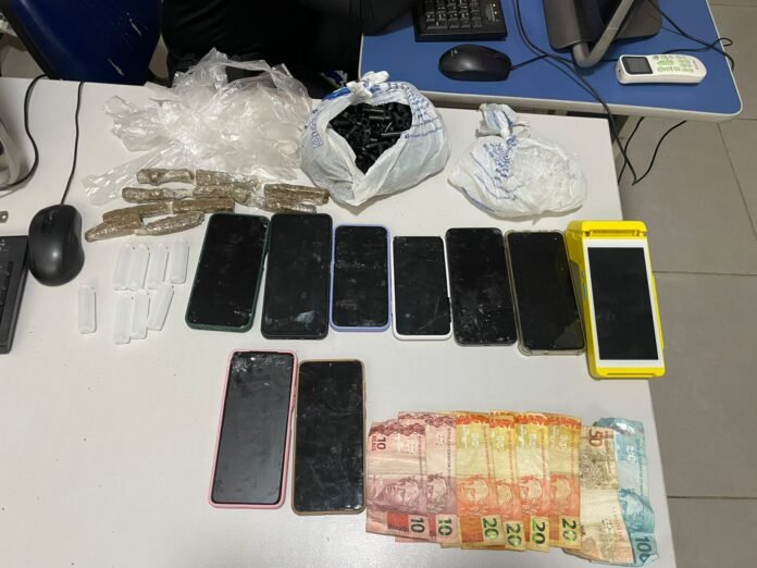 No decurso das diligências, os policiais cumpriram dois mandados de busca e apreensão em endereços que o suspeito poderia utilizar como esconderijo. Durante a operação, foram encontradas substâncias entorpecentes, uma quantia em dinheiro e a referida máquina de cartão. Também foram detidos um adolescente de 16 anos, uma mulher de 24 anos e um homem de 20 anos, todos já monitorados pela equipe policial devido ao seu suposto envolvimento com o tráfico de drogas na região.